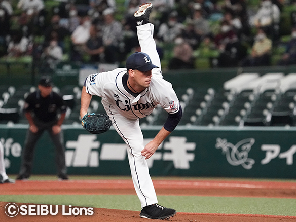 7番 外崎 三直 ランナー1,2塁 外角低めのフォークを打つもサードライナー 3アウトチェンジ |