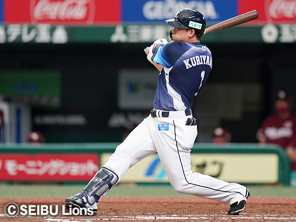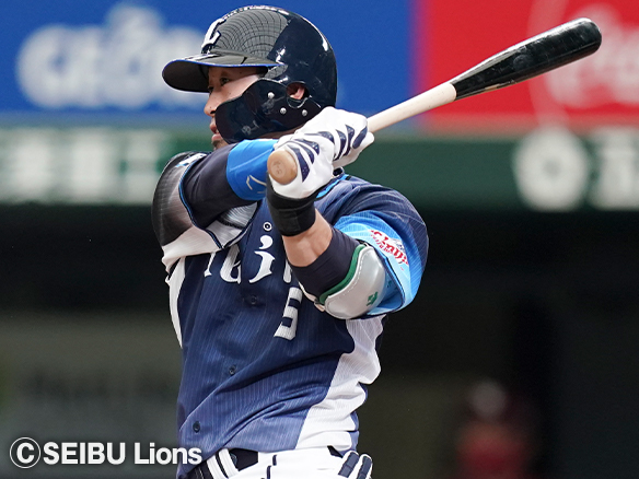 ランナー1,2塁 外角のストレートをライトへタイムリーヒット! 1,3塁 西5-0楽