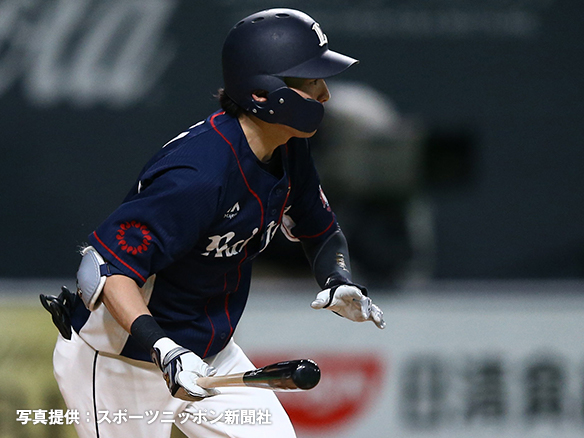 9番 谷内 四球 フォアボールを選ぶ 1塁  |