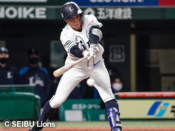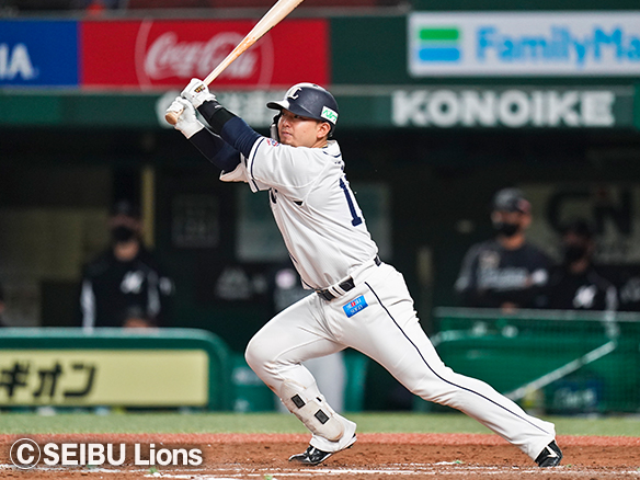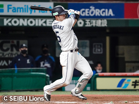 8番 外崎 左2 外角高めのシンカーをレフトへ打ってツーベース 2塁 |