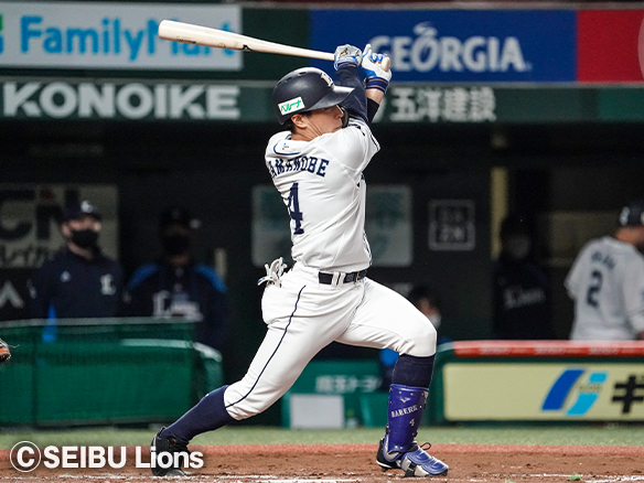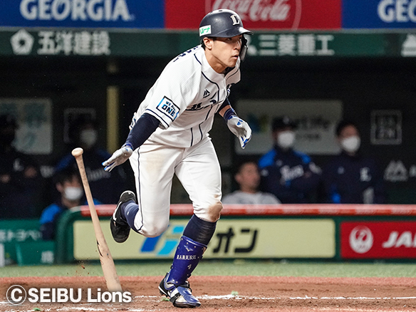 5番 外崎 中安 高めのチェンジアップをセンターへ打ってヒット 1塁 |
