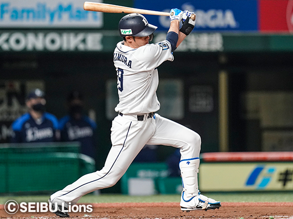 8番 木村 左本 ランナー3塁 カウント1-1から左中間へ先制2ランホームラン! 西2-0楽 ![]() 2