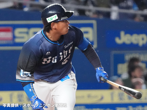 | 5番 レアード 左安 内角低めのストレートをレフトへ打ってヒット 1塁 | |