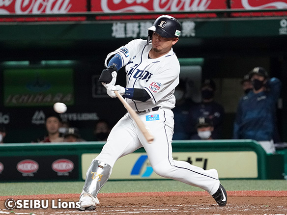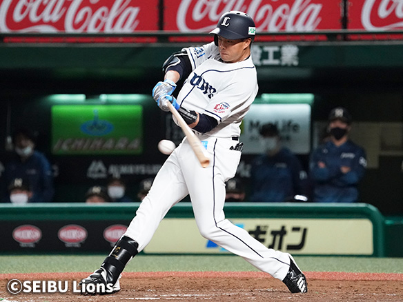 2番 源田 左安 外角低めのツーシームをレフトへ打ってヒット 1塁 |