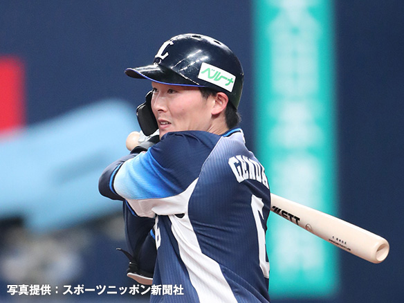 2番 源田 左安 内角高めのカットボールをレフトへ打ってヒット 1塁 |