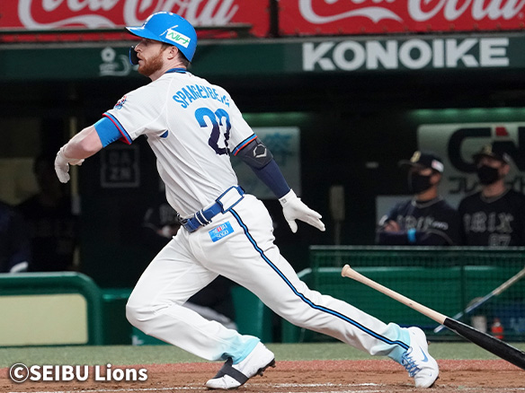 6番 スパンジェンバーグ 右安 ランナー1,2塁 ど真ん中のスライダーをライトへタイムリーヒット! 西2-3オ ![]() 2