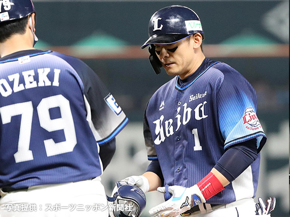 1番 源田 右安 内角のカットボールをライトへ打ってヒット 1塁 |