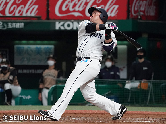 5番 栗山 右安 満塁 ど真ん中のカーブをライトへタイムリーヒット! 2,3塁 西4-1日 送球間に3塁走者源田が進塁 西5-1日 ![]() 5