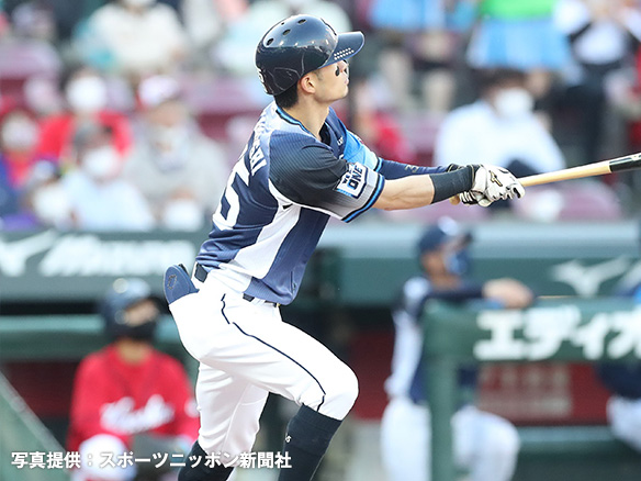 5番 山川 左安 ど真ん中のスライダーをレフトへ打ってヒット 1塁 |