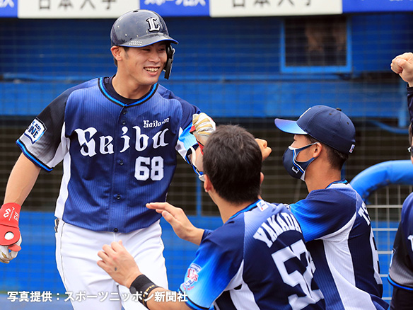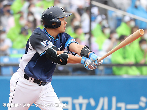 5番 山川 四球 フォアボールを選ぶ 1塁 |
