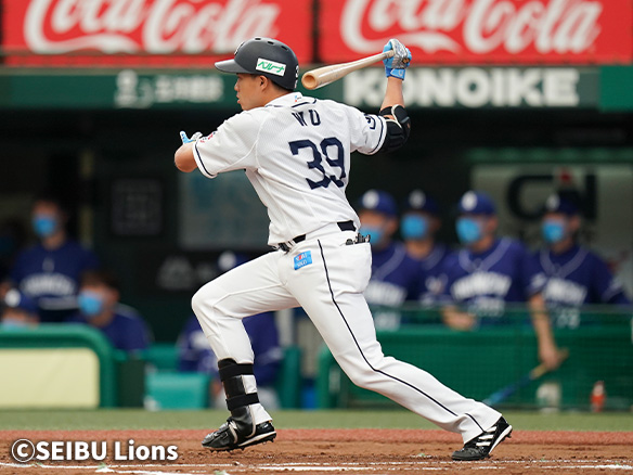 4番 呉 一安 ランナー2,3塁 内角のカットボールをファーストへ先制タイムリーヒット! 1,3塁 西1-0中 ![]() 1