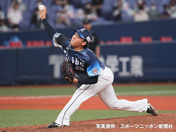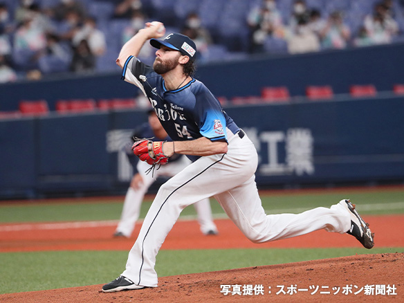 投手 宮城 4番 山川 空三振 外角低めのチェンジアップを空振り三振 1アウト |