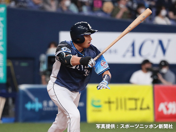 8番 紅林 左安 ランナー2塁 外角のスライダーをレフトへタイムリーヒット! 1塁 オ10-0西 ![]() 10