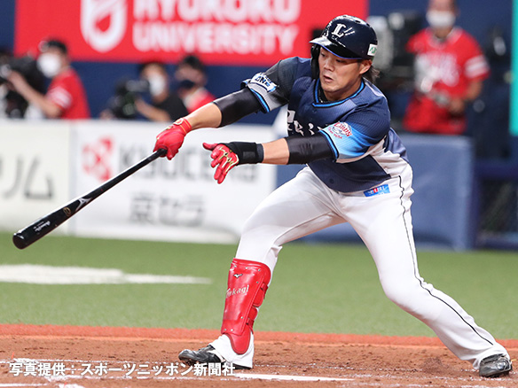 6番 長谷川 中安 ランナー2,3塁 157キロの高めのストレートをセンターへタイムリーヒット! 1,3塁 ソ2-5西 ![]() 2