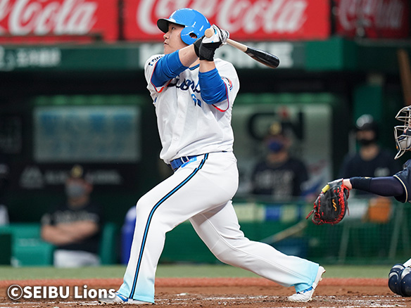 1番 外崎 遊安 ランナー1塁 内角高めのスライダーをショートへ打ってヒット 1,2塁 |
