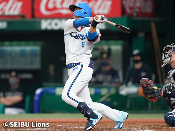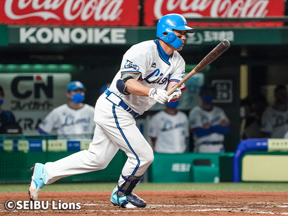 2番 源田 投安 外角低めのスライダーをピッチャーへ打ってヒット 1塁 |