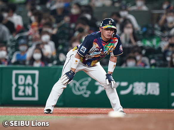 1番 外崎 左安 高めのスライダーをレフトへ打ってヒット 1塁 |