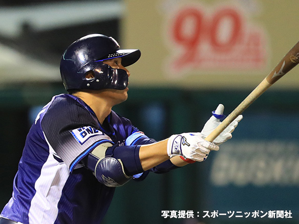 7番 山川 左安 内角低めのフォークをレフトへ打ってヒット 1塁 |