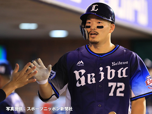 5番 外崎 右安 ランナー1塁 低めのフォークをライトへ打ってヒット 1,3塁 |