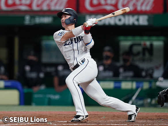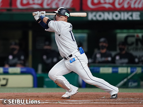 5番 外崎 左安 ど真ん中のカットボールをレフトへ打ってヒット 1塁 |