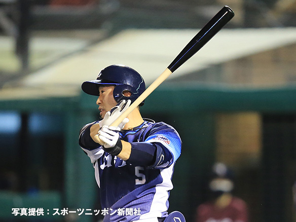 5番 山川 右飛 外角低めのカーブを打つもライトフライ 2アウト |