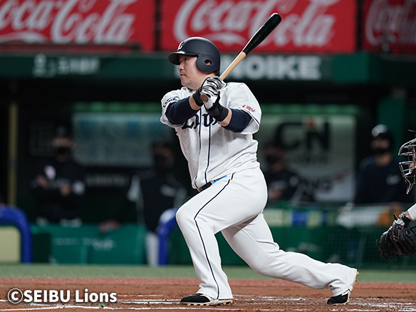 5番 山川 左安 ど真ん中のフォークをレフトへ打ってヒット 1塁 |
