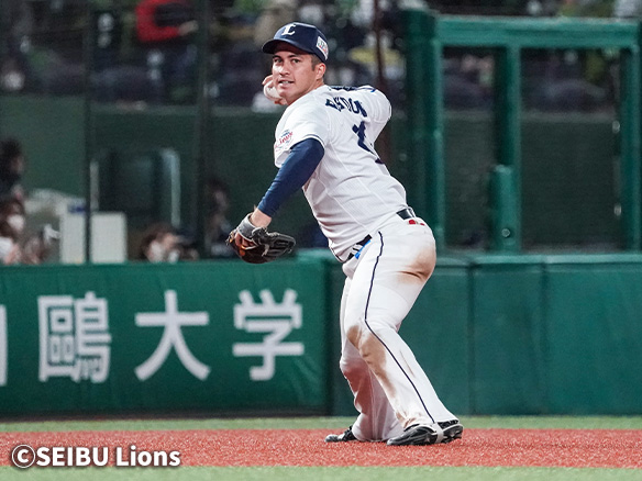 1番 外崎 空三振 低めのスライダーを空振り三振 3アウトチェンジ |