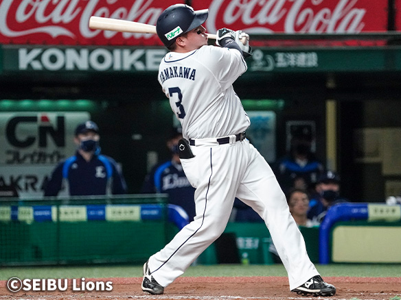 5番 山川 空三振 低めのフォークを空振り三振 3アウトチェンジ |