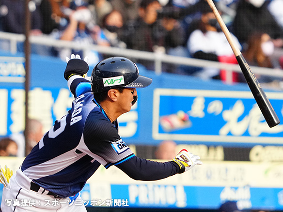 投手 隅田 5番 佐藤都 中安 低めのスライダーをセンターへ打ってヒット 1塁 |