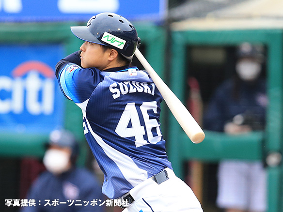 6番 鈴木 左安 ど真ん中のカーブをレフトへ打ってヒット 1塁 |