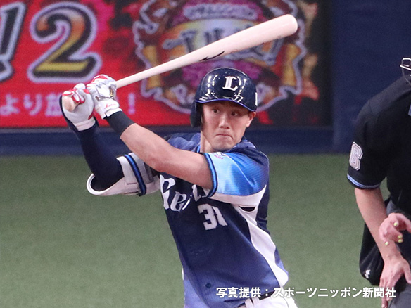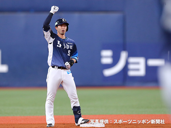 | 2番 西野 左安 ど真ん中のストレートをレフトへ打ってヒット 1塁 | |