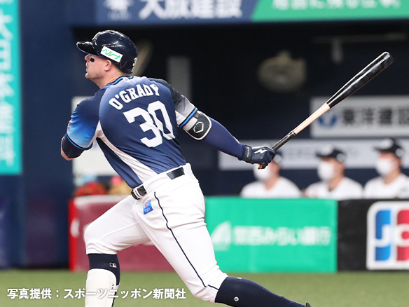 3番 オグレディ 左安 150キロの外角高めのストレートをレフトへ打ってヒット 1塁 |
