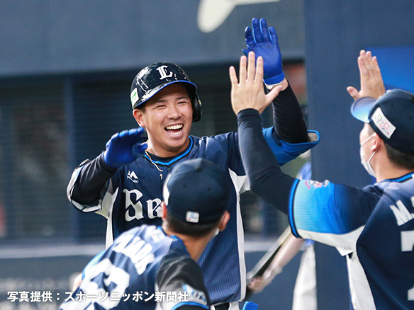 1番 源田 遊安 外角低めのカーブをショートへ打ってヒット 1塁 |