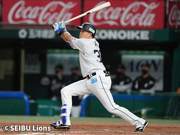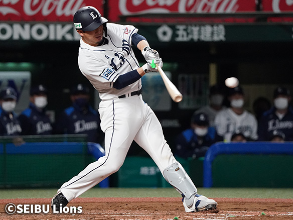 5番 外崎 右安 外角のチェンジアップをライトへ打ってヒット 1塁 |