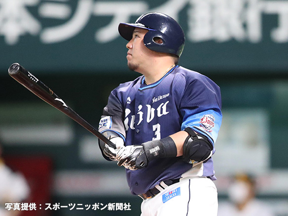3番 外崎 空三振 外角低めのフォークを空振り三振 3アウトチェンジ |