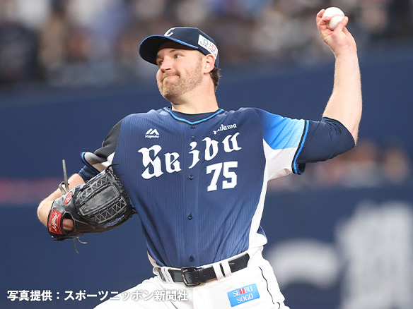 投手 山岡 4番 山川 空三振 外角低めのスライダーを空振り三振 1アウト |