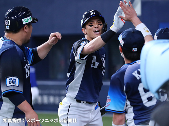 4番 山川 左本 カウント1-1からレフトスタンドへ勝ち越しホームラン! オ1-2西 ![]() 1