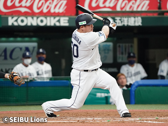 3番 外崎 中安 ランナー2塁 外角低めのスライダーをセンターへタイムリーヒット! 1塁 西5-7ロ ![]() 5
