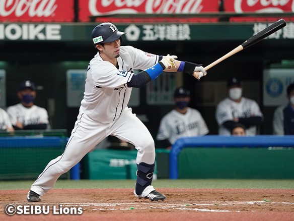 1番 源田 遊安 外角低めのストレートをショートへ打ってヒット 1塁 |