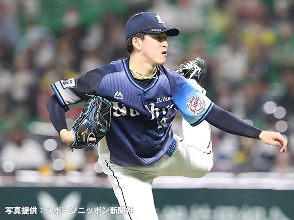 投手 東浜 4番 山川 四球 フォアボールを選ぶ 1塁 |