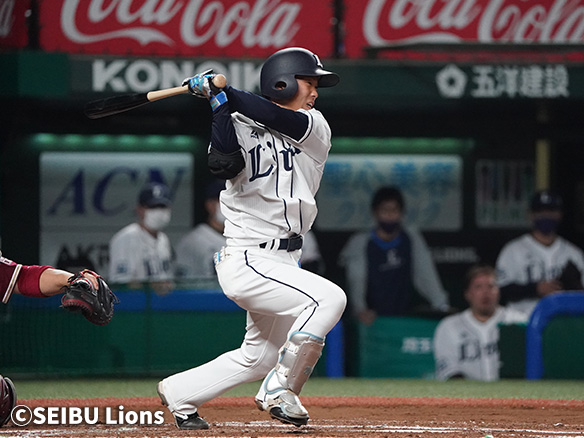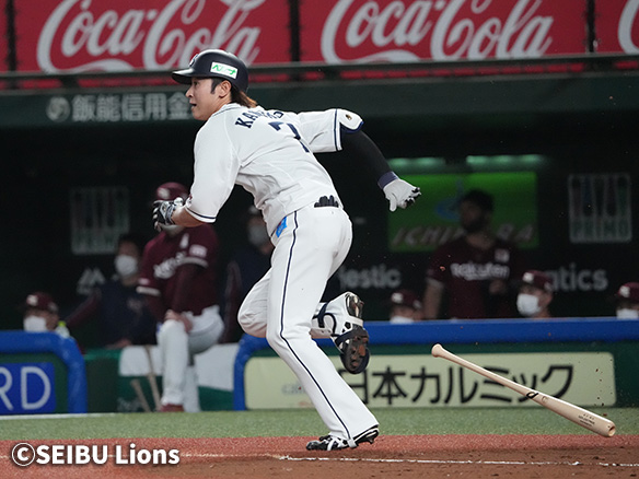 3番 外崎 左安 ランナー2塁 外角低めのスライダーをレフトへ同点タイムリーヒット! 2塁 西2-2楽 ![]() 2