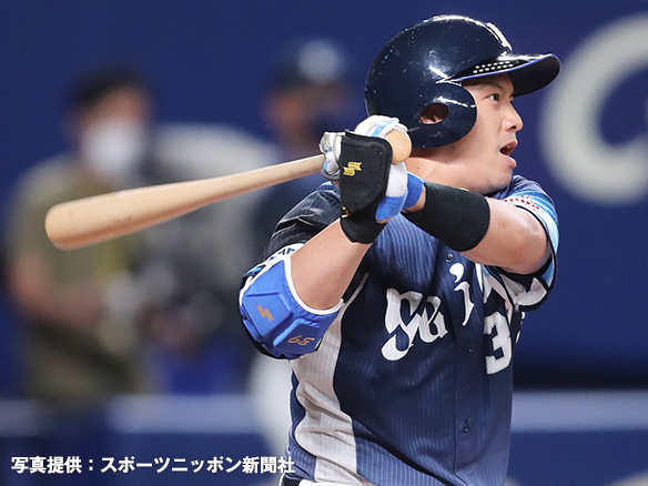 4番 山川 四球 フォアボールを選ぶ 1塁 |