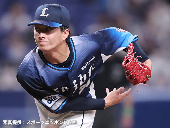1番 外崎 投安 外角低めのカーブをピッチャーへ打ってヒット 1塁 |