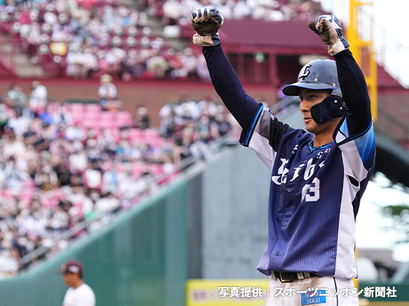 2番 源田 中3 ランナー1,2塁 低めのカットボールをセンターへタイムリースリーベース! 3塁 楽3-6西 ![]() 3