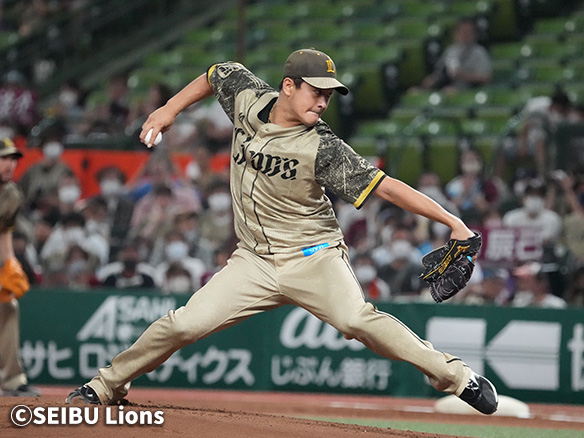 投手 辛島 1番 外崎 右飛 低めのストレートを打つもライトフライ 1アウト |