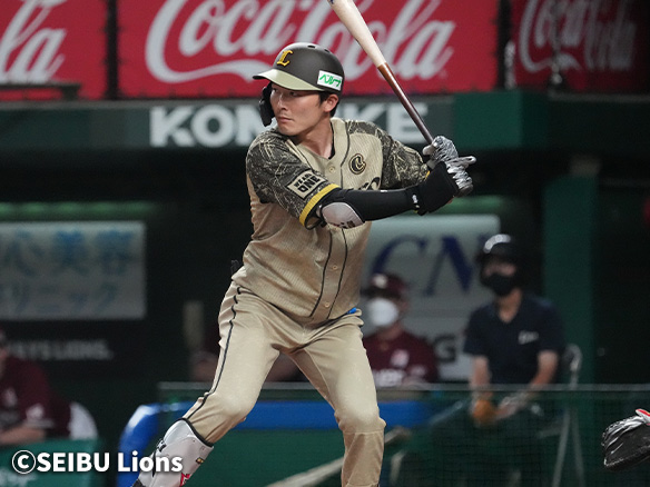 2番 源田 左安 外角低めのストレートをレフトへ打ってヒット 1塁 |