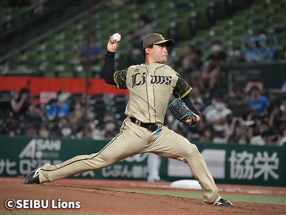 1番 外崎 左安 高めのスライダーをレフトへ打ってヒット 1塁 |