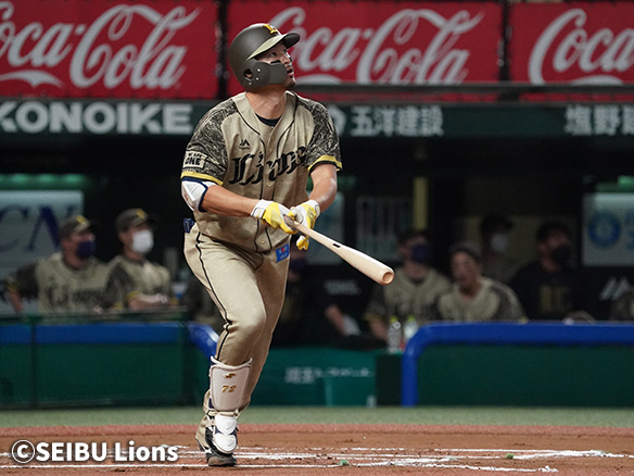 1番 外崎 右安 ランナー1,2塁 外角低めのカットボールをライトへタイムリーヒット! 1,3塁 西2-3ロ ![]() 2
