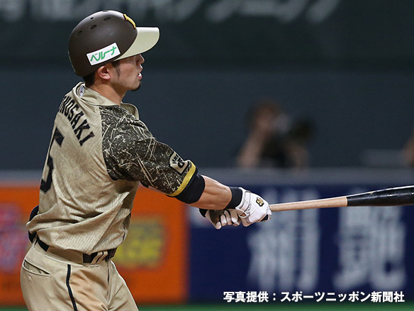 1番 外崎 空三振 内角のフォークを空振り三振 2アウト |