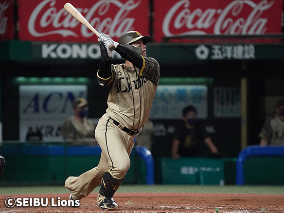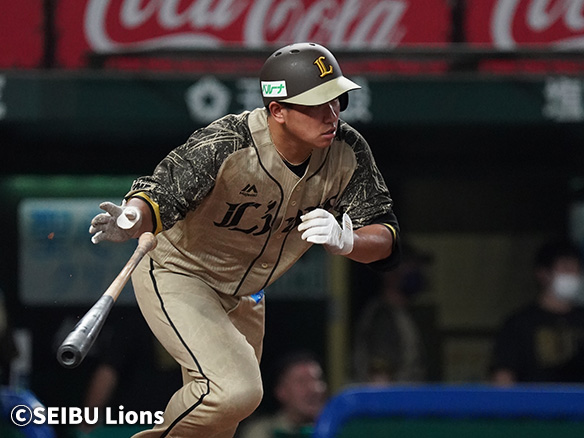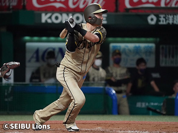 3番 牧原大 右安 内角高めのカットボールをライトへ打ってヒット 1塁 |
